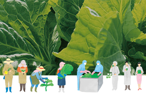 キューサイの自社グループ農場「キューサイファーム島根」を含む農場全体で収穫されるケールは、年間900tにものぼります。広大な農場で、農薬や化学肥料を使わず、厳格な基準のもとで育成されるケール。徹底管理された専用農場の魅力をご紹介!